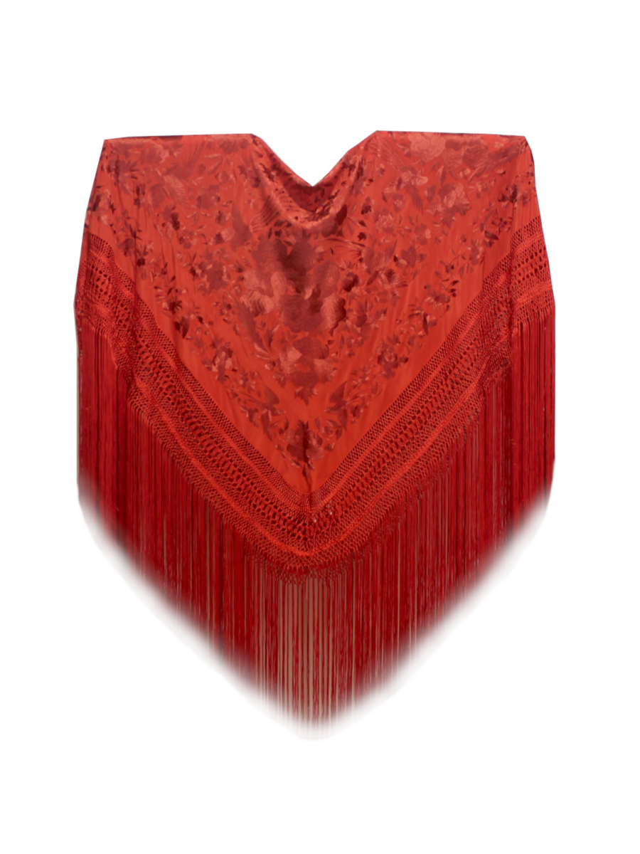 La mayoría de nuestros mantones de seda natural, un tejido suave, ligero y con un brillo natural, bordados y con flecos anudados a mano durante semanas o incluso meses como se hacía antes, por nuestros maestros artesanos de tercera generación.