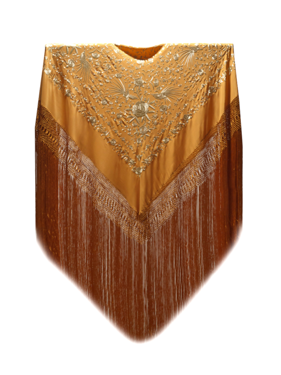 La mayoría de nuestros mantones de seda natural, un tejido suave, ligero y con un brillo natural, bordados y con flecos anudados a mano durante semanas o incluso meses como se hacía antes, por nuestros maestros artesanos de tercera generación.