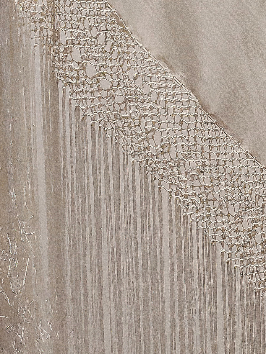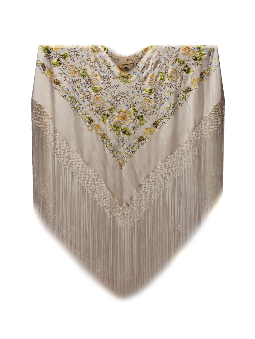 La mayoría de nuestros mantones de seda natural, un tejido suave, ligero y con un brillo natural, bordados y con flecos anudados a mano durante semanas o incluso meses como se hacía antes, por nuestros maestros artesanos de tercera generación.