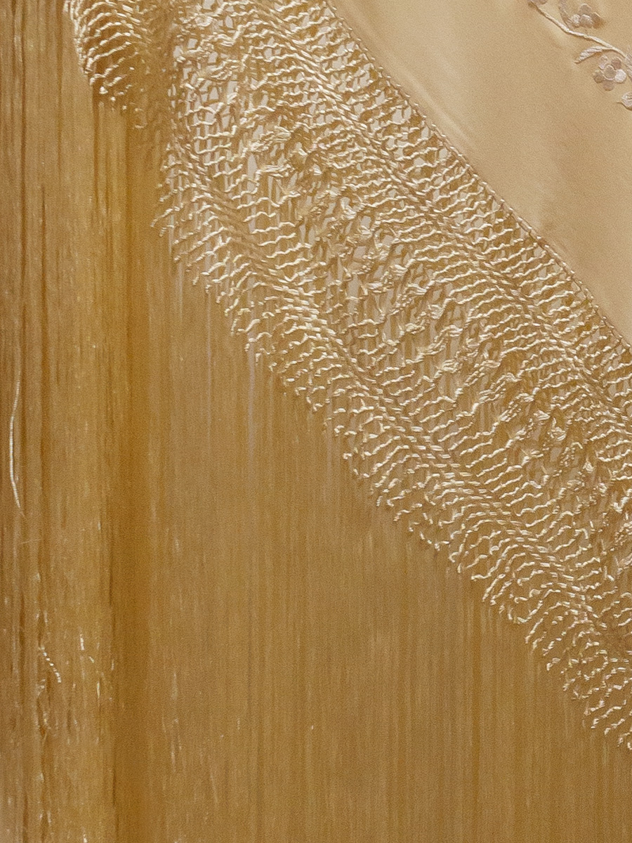 La mayoría de nuestros mantones de seda natural, un tejido suave, ligero y con un brillo natural, bordados y con flecos anudados a mano durante semanas o incluso meses como se hacía antes, por nuestros maestros artesanos de tercera generación.