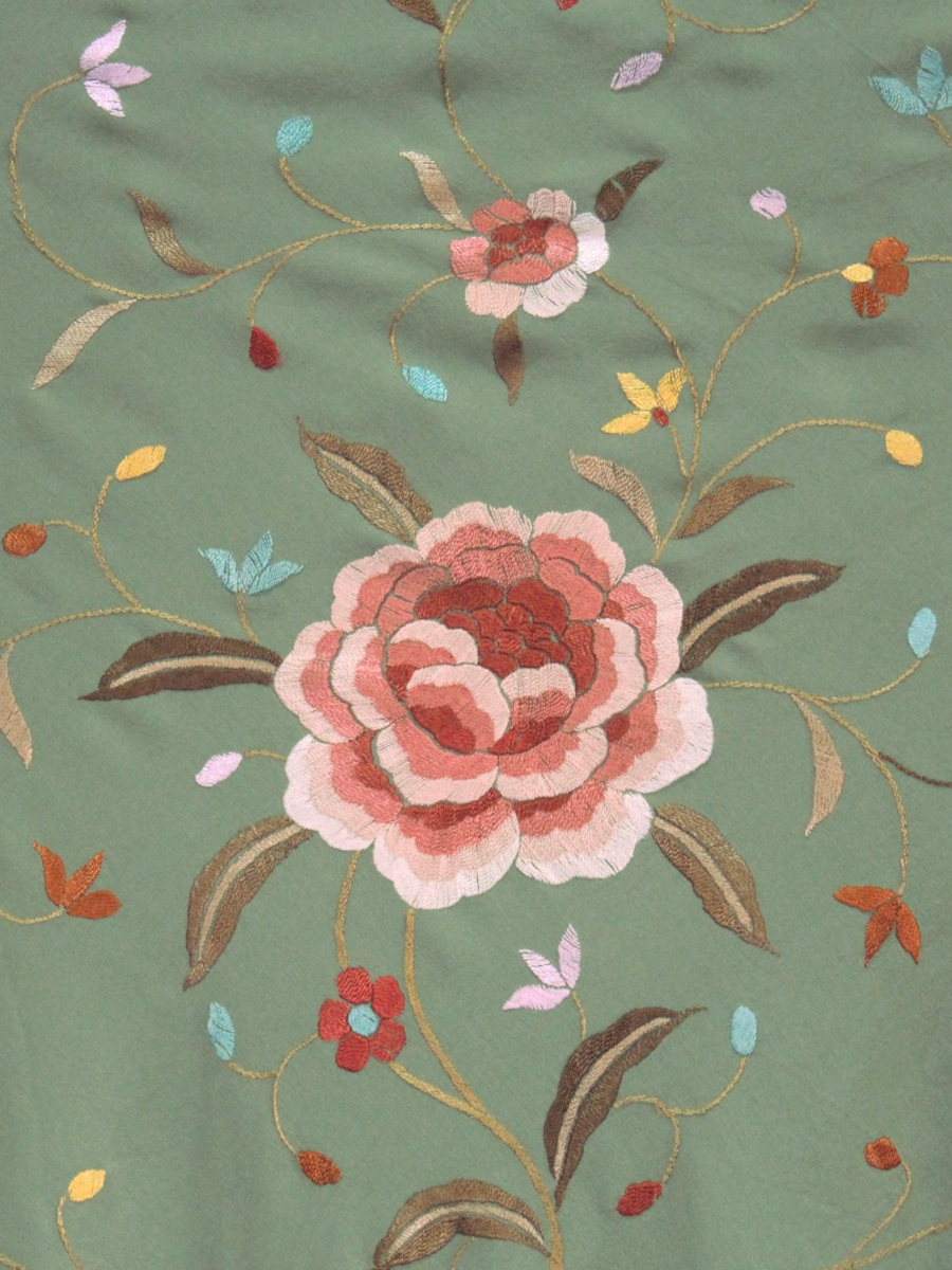 Nuestros bordados son ricos y coloridos, dominados como es tradicional por flores grandes y coloridas como rosas, peonías, claveles, y otras flores exóticas, pero también aves y otros animales, etc., especialmente en nuestros mantones más antiguos.