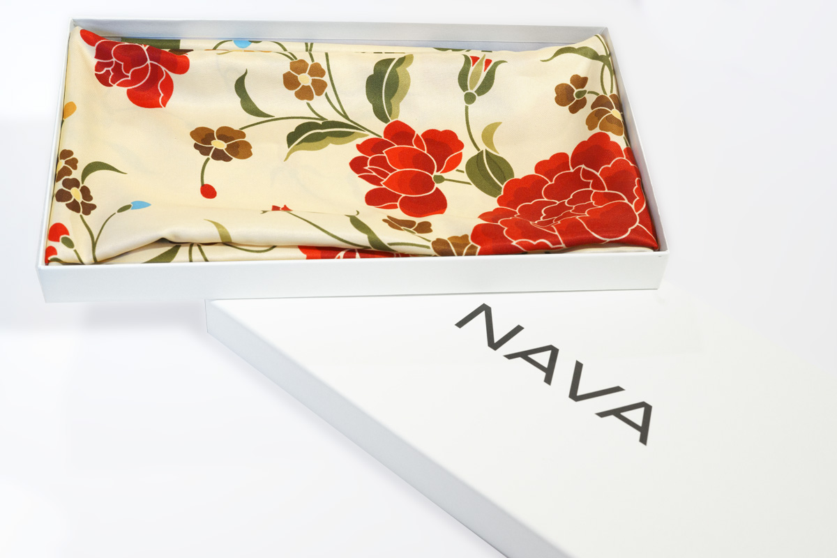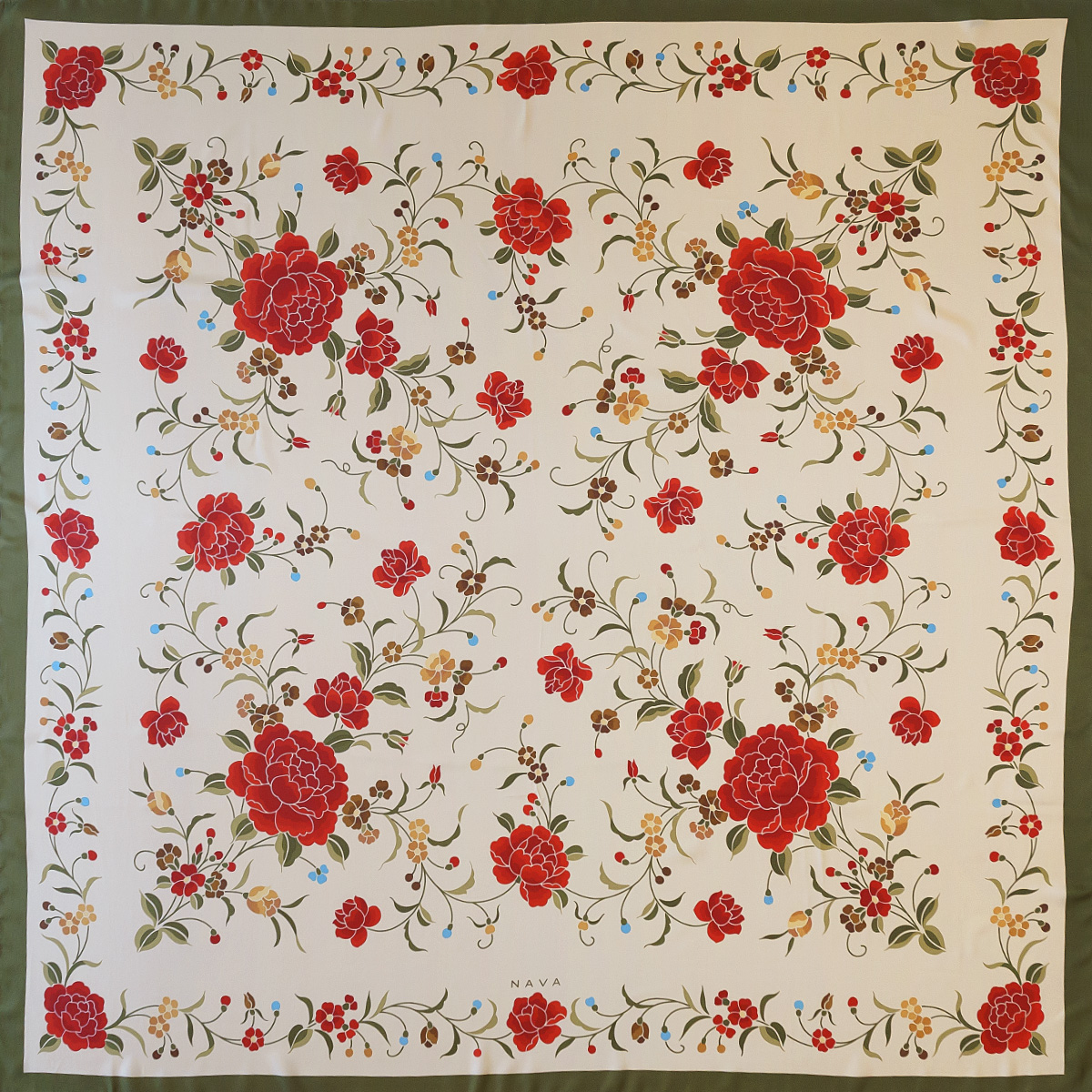 Pañuelo cuadrado de tacto seda con estampado floral inspirado en nuestros mantones de Manila.